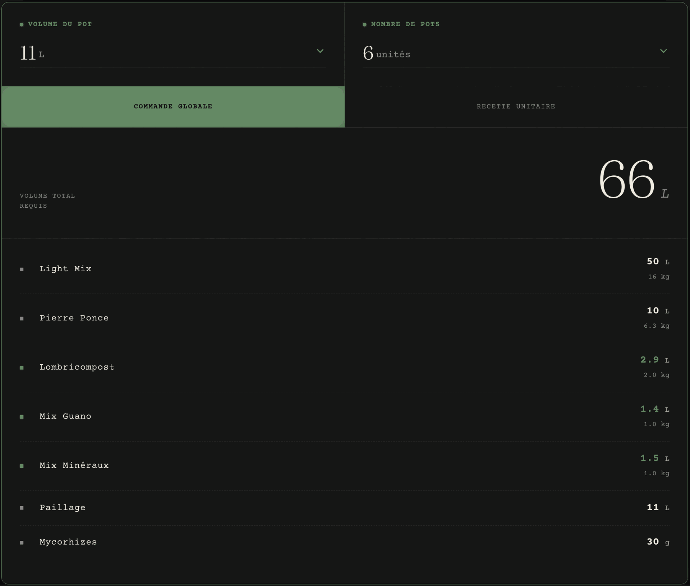 Nous avons développé un Configurateur de Sol interactif. Entrez vos paramètres, nous générons votre recette de mélange parfaite.